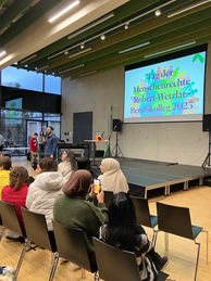 Der Tag der Menschenrechte begann mit einer gemeinsamen Feier in der Aula. Unser Schulleiter, Herr Anselm, betonte in seiner Ansprache den großen Wert der Menschenrechte, vor allem, wenn uns zeitgleich drastische Bilder aus der ganzen Welt ereilen würden. Gleichzeitig sei der Alltag vieler Menschen durch Gewalt im Netz geprägt. Ziel sei es, dass sich alle Schüler*innen mit dem Thema beschäftigten. Herr Anselm dankte allen Kolleg*innen, die den Tag vorbereitet haben. Im Anschluss wurde viel gemeinsam gesungen: Alia, Michelle und Cynthia stimmten „We shall overcome“ und „Stay“ von Rihanna an, musikalisch unterstützt durch Musiklehrer Herrn Hiltawski. Pfarrer Schwarz erzählte die Geschichte von dem König, der entscheiden musste, welcher seiner drei Söhne sein Reich erben sollte. Der jüngste Sohn würde das Reich wohl erben, weil er die kleinen Dinge schätzt und im Leisen wirkt. Anschließend wurde ein Video über digitale Gewalt im Netz gezeigt. Das Video warf die Frage auf, wann fängt digitale Gewalt an. In ihm werden Statements von betroffenen Mädchen, Jungen, jungen Frauen und jungen Männern gezeigt. Unser neuer Musiklehrer Herr Klassen rundete den Auftakt ab, indem er zusammen mit den Anwesenden „Imagin“ von John Lennon interpretierte. Auf die Frage: „Was hat sie am meisten berührt?“ äußerten die Schüler*innen der Berufsfachschule 2 Ernährungs- und Versorgungsmanagement: „Das Video“. Interessant fanden sie die Geschichte von dem König mit seinen Söhnen; die musikalischen Beiträge waren ihr Highlight. Astrid Josten